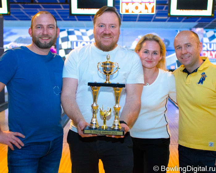Сразу после основного этапа были подведены итоги всего сезона 2025. В командном рейтинге лидером стала команда "Урбан Лидеры Москвы", и ей был вручен соответствующий кубок как лучшей команде года. В индивидуальном рейтинге медалями была награждена первая тройка: Тимофей Настин ("Мы в деле"), Евгений Лебедь ("Мы в деле") и Апет Хачатуров ("Урбан Лидеры Москвы"). А дальше началось главное событие сезона - игры Гранд Финала. Напомним правила: 7 команд делятся на 3 группы. В первый этап финала проходят команды, занявшие в этом году места с 5 по 7. Сразу во второй этап проходят две команды, занявшие места с 3 по 4, а команды, занявшиые первые два места, проходят сразу в третий, решающий этап Гранд Финала. В каждом этапе все команды-участницы играют по одной игре и лишь одна, лучшая, проходит дальше. В первом этапе с большим отрывом победила команда "Бесконечность". Во втором борьба была заметно упорней и разница между 1 и 2 результатом составила всего 17 очков, победила команда "Мы в деле". А в третьем финальном этапе команда "Мой город - мое дело", посчитав, что один кубок хорошо, а два - заметно лучше, обошла всех соперниц и выиграла главный кубок сезона! Очень трудная победа, так как соперники наступали на пятки и отдавать победу не собирались. Между 1 и 2 результатом всего 2 очка разницы. Такая победа намного приятнее! Поздравляем команду "Мой город - мое дело" с двумя победами в один день! Поздравляем и остальных призеров. Благодарим всех игроков и за этот, декабрьский этап и за участие в сезоне! Каждый турнир благодаря всем вам стал праздником! Надеемся, что новогодние каникулы не дадут вам всем забыть навыки, полученные в этом сезоне. Потому что в январе мы ждем всех желающих на первый этап следующего сезона! А пока что с наступающим Новым годом всех, счастья и удачи не только на дорожках для боулинга, но и в других начинаниях! » Результаты