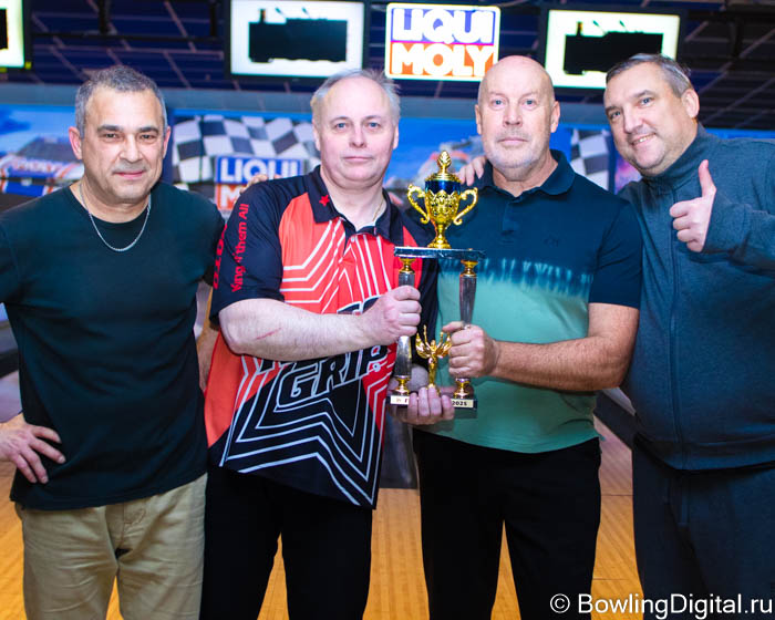 По итогам всего сезона лучшей командой стала "ГЛИМС". А топ3 индивидуального рейтинга составили Сергей Степанов ("ГЛИМС"), Вячеслав Севрюгин ("Еще по одной") и Даниил Большаков ("Андромеда"). Так же были награждены памятными кубками рекордсмены сезона: автором лучшей серии стал Кирилл Бышенко ("Кон-Пайп", 876 очков, средний 219,00); по одной игре лучшими стали Даниил Большаков ("Андромеда", 269 очков и Екатерина Курочкина ("ОМ-Пласт", 243 очка). А дальше начались игры Гранд Финала. Целый год команды готовились, бились за рейтинговые очки. В первом этапе команда "220В" была явно сильнее остальных соперников, победив с хорошим отрывом. А во втором все 4 команды отыграли от 613 до 632 очков, между 1 и 2 местом разница составила смешные (хотя проигравшим было совсем не смешно) 2 очка. И команда "220В" прорвалась в решающий этап. А в третьем команда "ГЛИМС" впервые за долгие годы выстрелила как из пушки, набрав 757 очков. При этом двое ее игроков показали результаты 247 и 224! Как выразился капитан "ГЛИМС" Сергей Степанов: "В ноябре в финале ЛЧ нам не хватило моих 233, мы продули 1 очко. В этот раз решили взять запас." Последний раз "ГЛИМС" выигрывала в ГФ аж в 2021 году, и там был похожий сценарий. Поздравляем команду "ГЛИМС" с двойной победой: со званием лучшей команды года (по рейтингу) и с главным кубком сезона! Еще раз поздравляем всех победителей и призеров как декабря, так и всего сезона. Благодарим всех участников за этот год, за игру, настроение и пыл. Позади остался отличный сезон, будем надеяться - следующий будет не хуже :) Ждем всех в январе на первый этап! И конечно же поздравляем всех с наступающим Новым годом! Счастья и удачи всем! » Результаты
