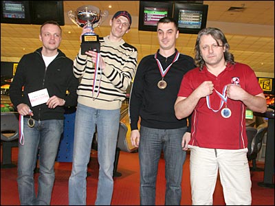 Но вернемся к боулингу. Первый этап текущего сезона ознаменовался очень упорной борьбой в верхней части списка. Между первым и вторым место разница в набранных очках составила всего ОДНУ кеглю! Да и от третьего места победителей отделило всего 17 очков. Боюсь ошибиться, но кажется – такое мы видим на чемпионате впервые. Несложно догадаться – последняя четверть встречи была очень интересной. Хотя и начало было неслабым, героем первой четверти стала команда «БЕЛИМО». Временно потеряв капитана (будь он не ладен, этот московский грипп), команда впервые включила в свой состав представительницу прекрасного пола, Екатерину Терехову. По видимому, одного ее взгляда хватило команде, чтобы как следует воодушевиться и «выдать по полной». В первой же игре Олег Русинов сыграл свою лучшую игру на чемпионате, набрав 209 очков. Которые, кстати, стали победными в этот раз в номинации «Лучший результат в одной игре среди мужчин». Команда побыла некоторое время на второй строчке игровой таблицы, но потом немного сдала позиции и опустилась на четвертое место. Приятно констатировать факт – «БЕЛИМО» медленно и верно набирает обороты и в скором времени явно сможет доставить немало забот тем, кто привык без медалей с турнира не уезжать. Простите, что назвал героями не первых. Команда «VALTEC» так часто бывает на первой строчке, что их результатам уже давно никто не удивляется, а потому особого ажиотажа тоже нет. Просто одни из лучших. Как можно понять из таблицы – в этот раз им просто неповезло. Так как проиграть с такой разницей как одно очко – это скорее каприз фортуны, чем определение сильнейшего. Противный такой каприз, я бы даже сказал – мерзопакостный. Но факт остается фактом – в этот раз «VALTEC» лишь на втором месте. Огромный шанс на победу имела команда «Timberk». Вяловато начав, к третьей игре команда вернулась в тонус, резко пошла вверх и до нового кубка им не хватило 17 очков. Правда, Виктор Минц смог обойти на 3 очка Михаила Василькова и завоевать малый кубок за лучшую индивидуальную серию. А в коллекции «Timberk» новая порция бронзовых медалей. Еще немного – и смогут памятник отлить. Кому, вы спросите? Подозреваю тому, кто в последней игре чуть было не вышел из 100 очков. Лишь бы не посмертно :) На пятом месте снова команда «АЯКС». С одной стороны хорошо, что они так стабильно попадают в первую половину списка. С другой – уже давно хочется увидеть, как игроки «АЯКСа» всерьез поборются за медали. Что же, спишем это на долгий перерыв в игре и в марте желаем команде сыграть лучше. После долгого отсутствия в чемпионат вернулись две команды – «Тепломаркет» и «КОН». Первые здорово и приятно удивили старожилов – обычно «Тепломаркет» плотно сидел в хвосте таблицы, регулярно забирая поощрительный приз за последнее место. А тут – ну просто совсем другая картина маслом :) Средний резко перевалил за 120, в третьей игре средний результат превалил даже за 160 очков! Вот что значит – отдохнули, потренировались... Лишь бы не останавливались на достигнутом и шли дальше! Седьмое и восьмое место заняли «Alphatherm» и «ТАЙМ». Для «ТАЙМа» это выступление явно не стало чем-то выдающимся, хотя почетный приз за лучший результат в одной игре среди женщин ушел именно туда – Елена Федосеева набрала во второй игре 153 очка. Ух ты! Наши поздравления! Всем мужчинам «ТАЙМа» равняться на Елену! «Alphatherm» 