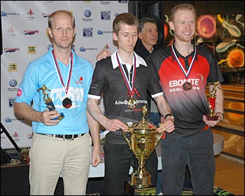 На турнир приехали спортсмены из 12 городов России и 2 городов Беларуси, а всего турнир набрал 67 участников. Для игры был выбрана программа масла "Токио". Причем "легла" она в этом случае очень и очень "дружелюбно" - турнир изобиловал высокими результатами, в квалификации был даже зарегистрирован одна PERFECT GAME (300 очков), с которой мы поздравляем Никиту Кошелева (Москва). Проходной балл из квалификации в финальную часть составил 1267 очков (средний 211,17). В завершающих этапах финала результаты начали "зашкаливать", проход в степ-леддер был на уровне среднего в 224 очка! В четверку финалистов прошли три представителя Москвы (Ян Коршак, Иван Семенов и Никита Кошелев) и один представитель Краснодара Вадим Калакуток. По итогам финала места рапределились следующим образом: 1. Иван Семенов Поздравляем победителя и призеров! Очень жаль, что не все желающие смогли доехать до турнира, по словам очевидцев все получилось вполне "на уровне". Спасибо организаторам за отличную идею и теплый прием. Центральная часть РФ не избалована турнирами с относительно высокими призовыми фондами и качественным составом участников. Будем надеяться, турнир еще будет проходит в следующие года. Отдельная благодарность Славолюбу Мильковичу за предоставленные фотографии